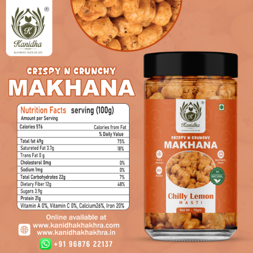 • Chilly Lemon Makhana is a unique blend of makhana and spices enhanced with premium ingredients that have therapeutic benefits.
